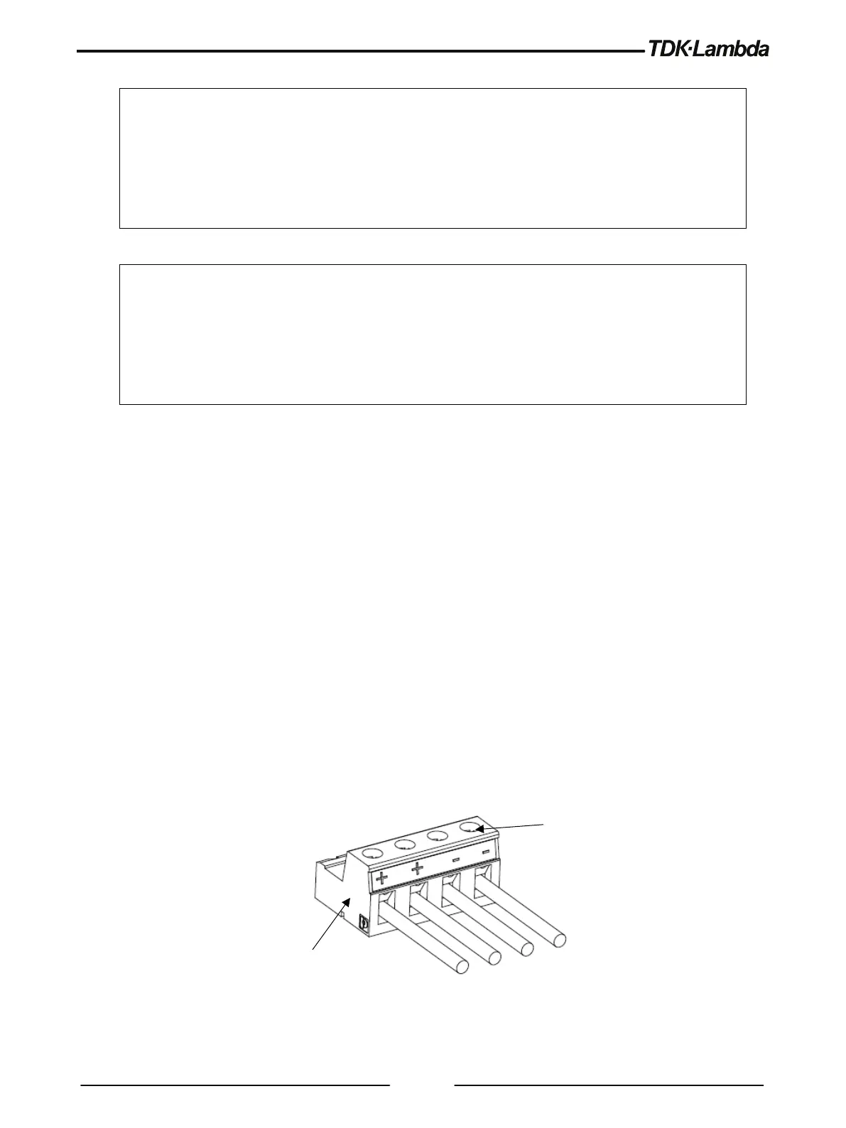 The 150V to 600V models have four terminal wire clamp output connector. The two left terminals are