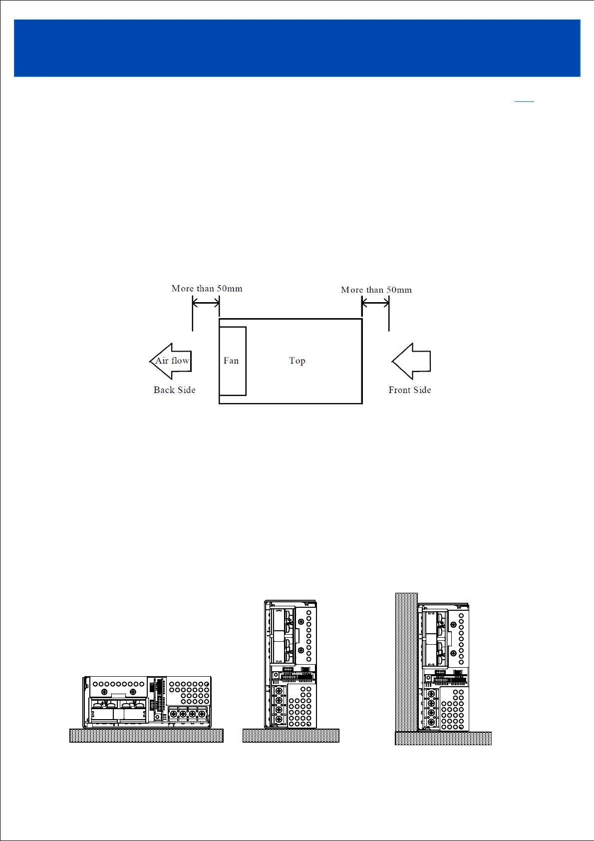 front and rear sides. Leave a space of at least 50mm from the intake and exhaust surfaces.