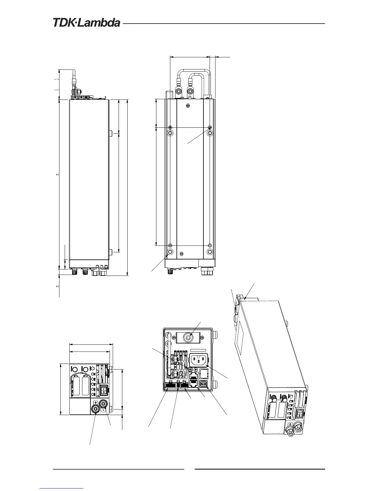 TDK-Lambda Z10-20 - Z200 W;400 W Front Panel Output Binding Post Outline Drawing