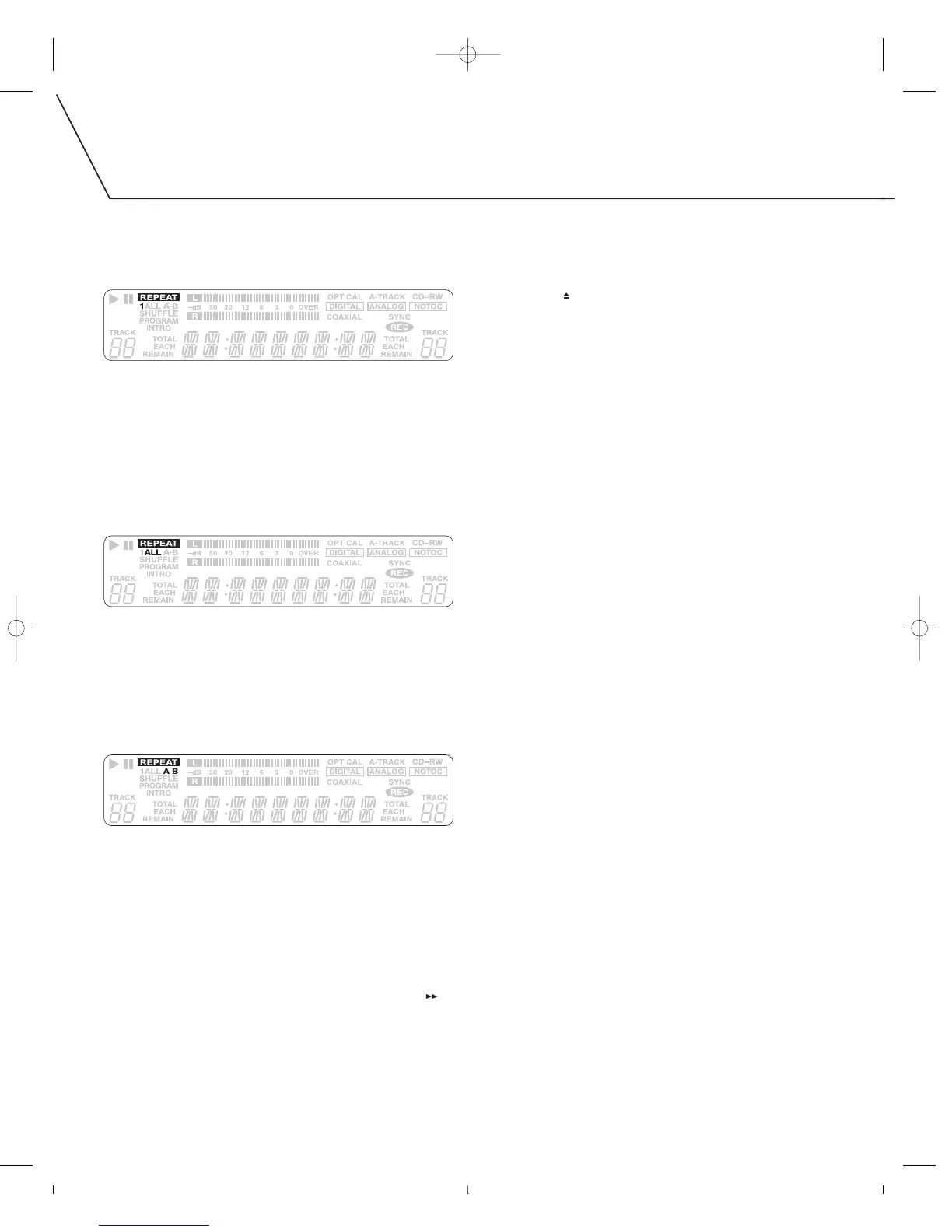 Repeatedly pressing the remote control’s REPEAT 1/ALL button