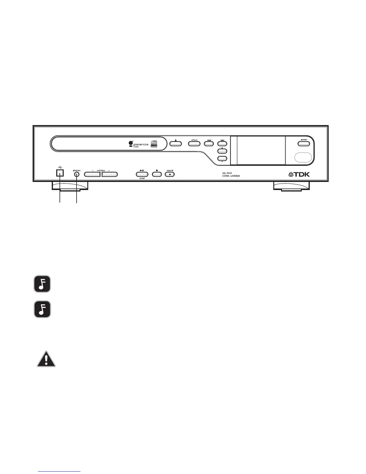 To listen through headphones, plug headphones into the unit’s front-panel jack.