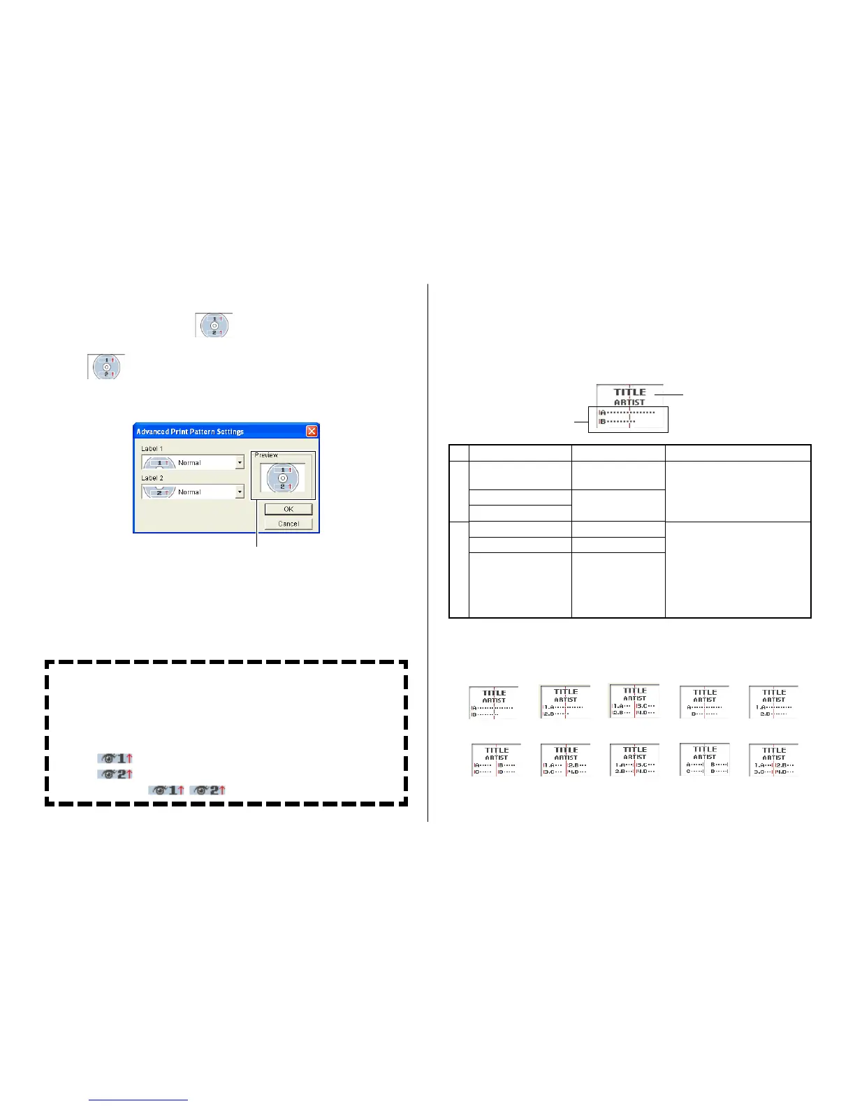 The 10 CD/DVD LABEL PRINTER text layouts are shown below.