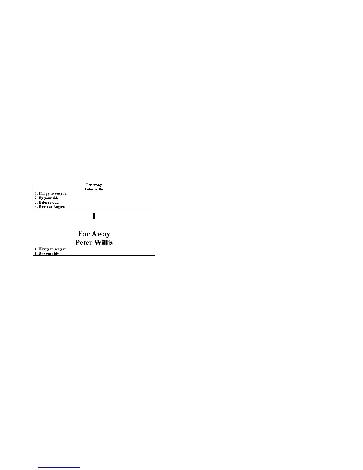 select. If you specify a 2-line font size for the title font and ar tist