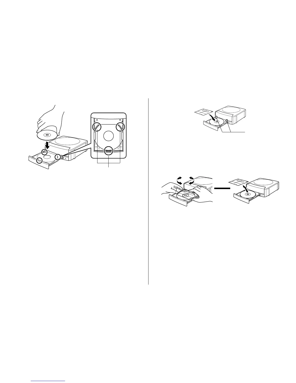 the tray). Placing the disc onto the tray upside-down will result in