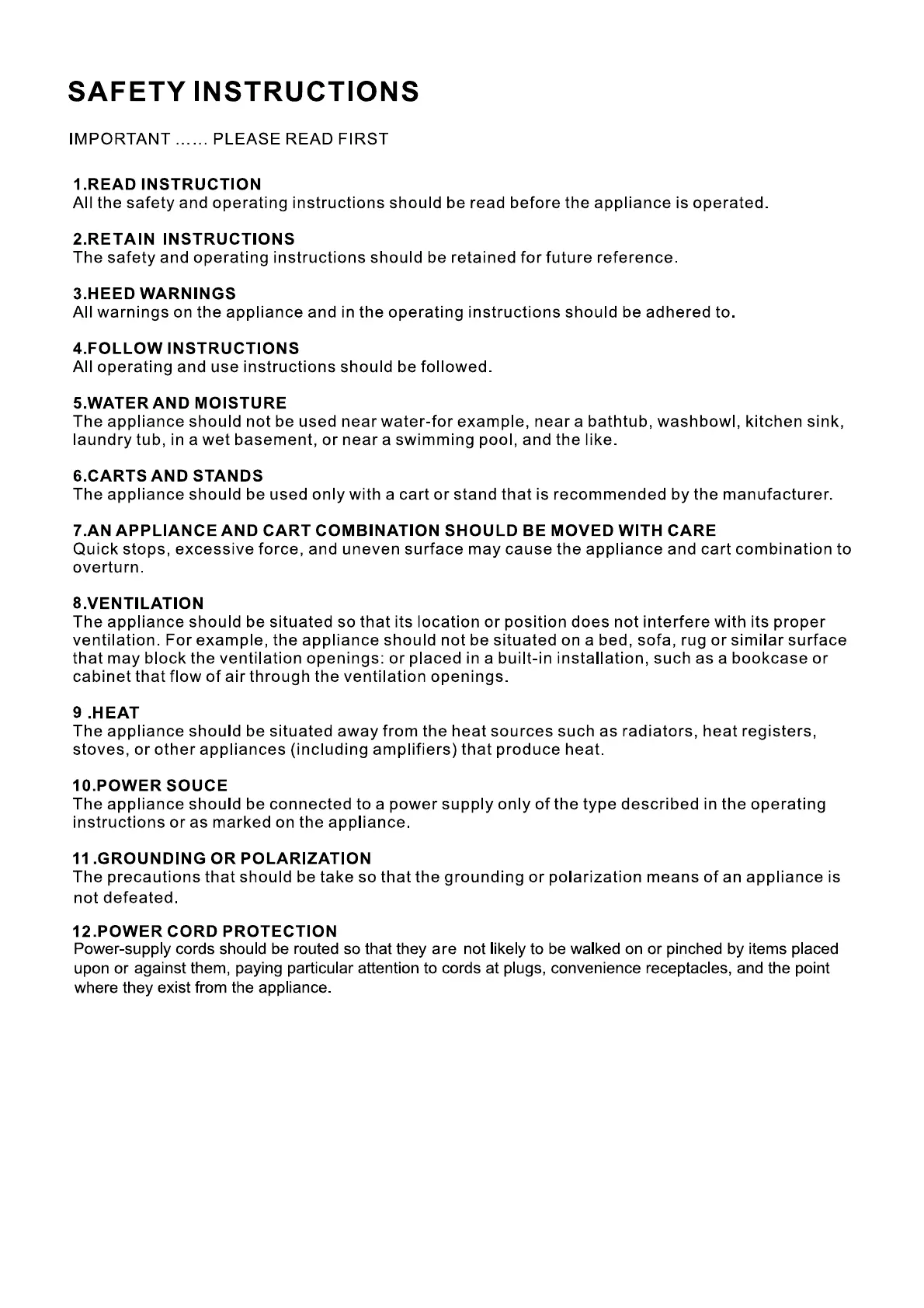 TDK NX-03CDMP3 - Comprehensive Safety Instructions; General Operating Precautions; Environmental and Placement Guidelines; Handling and Movement Safety
