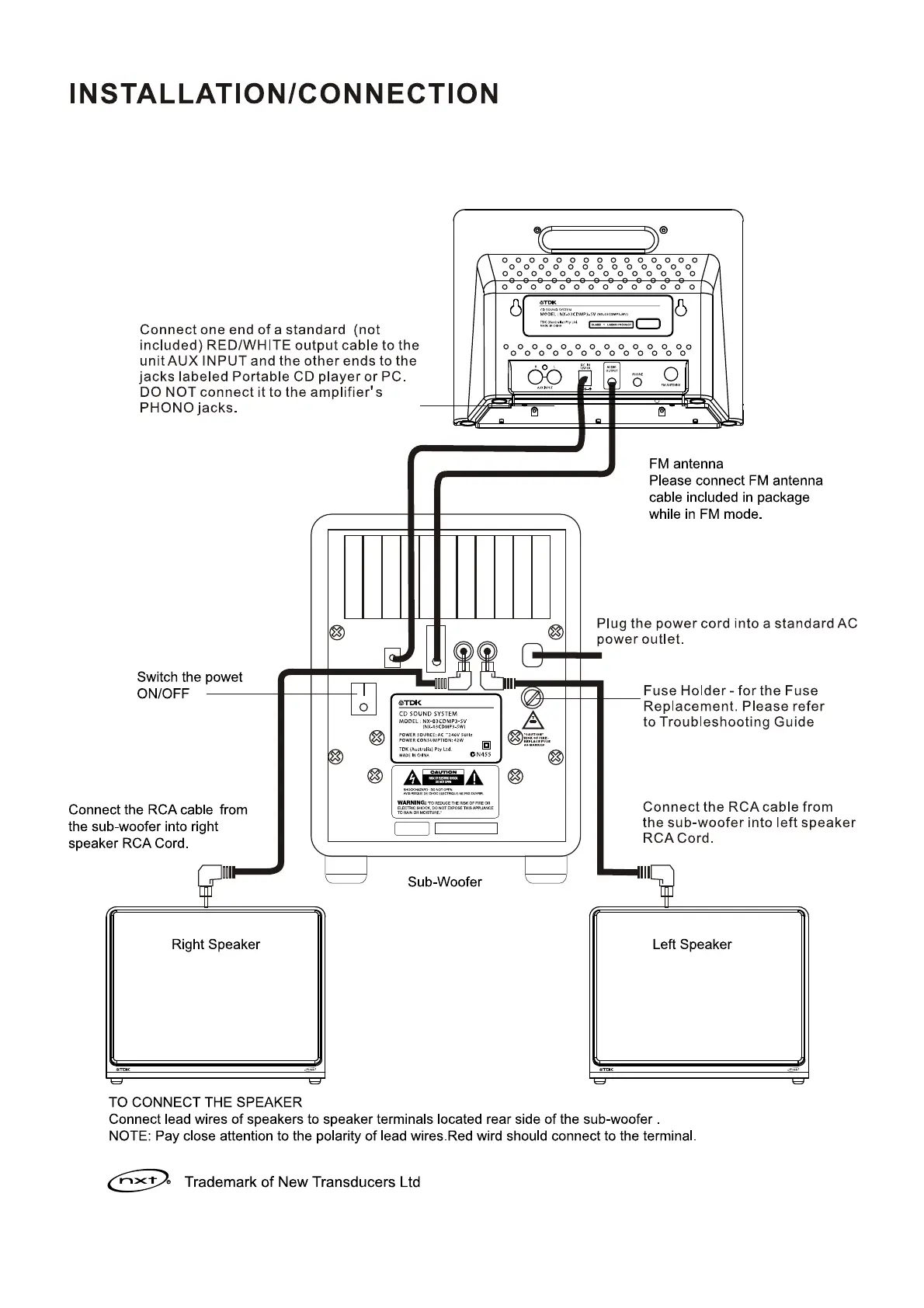 TDK NX-03CDMP3 - System Installation and Connection Guide; Connecting Audio Input Sources; FM Antenna Setup; Power Connection
