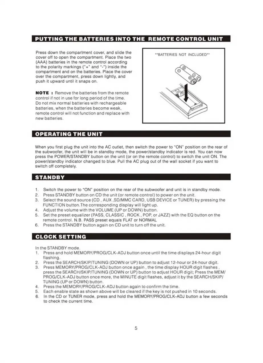 TDK NX-4CD - Putting the Batteries into the Remote Control Unit; Operating the Unit