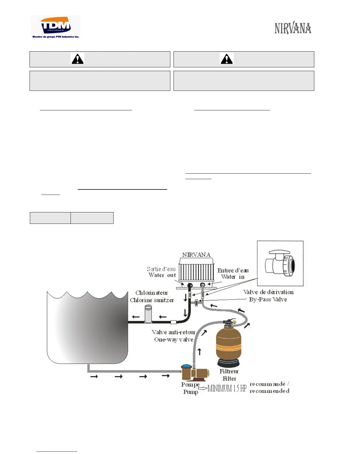 d’eau suffisant (pompe circulation recommandé 1.5 HP