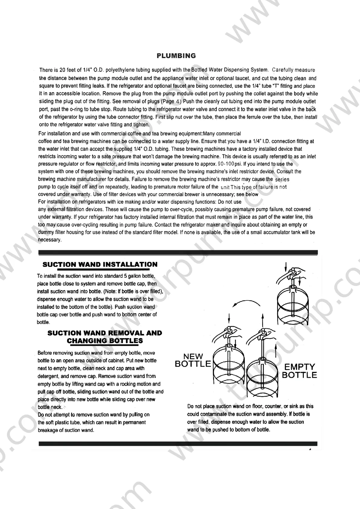 TDRFORCE BW1020A - Plumbing; Suction Wand Installation; Suction Wand Removal and Changing Bottles