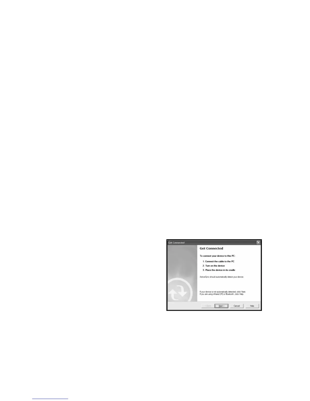 Connecting your unit to a PC is done using Microsoft ActiveSync