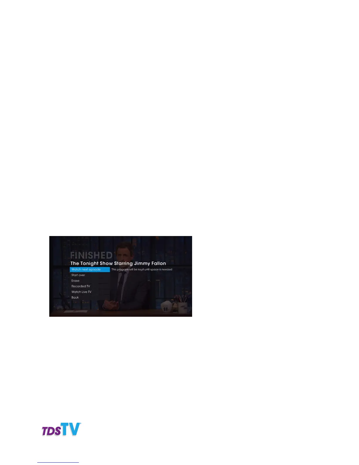 • Watch next episode takes you to the next episode, if it’s part of a series recording.