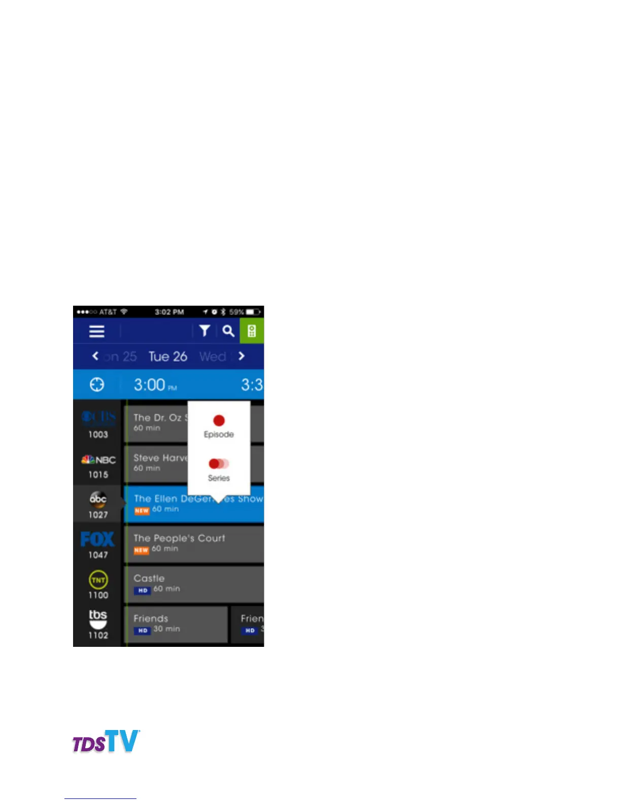 • Your TDS Companion App must be paired to the TV receivers