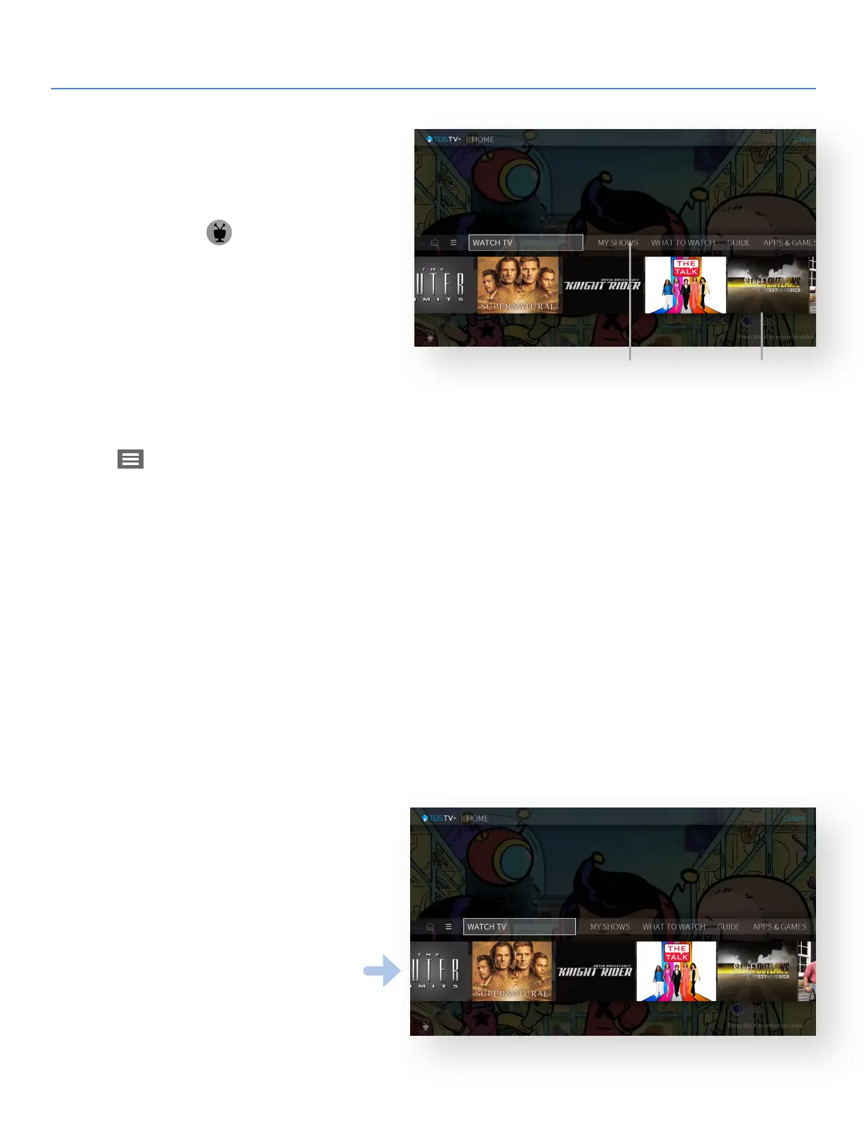 WATCH TV: go directly to the live TV channel playing in the background of the Home Screen.