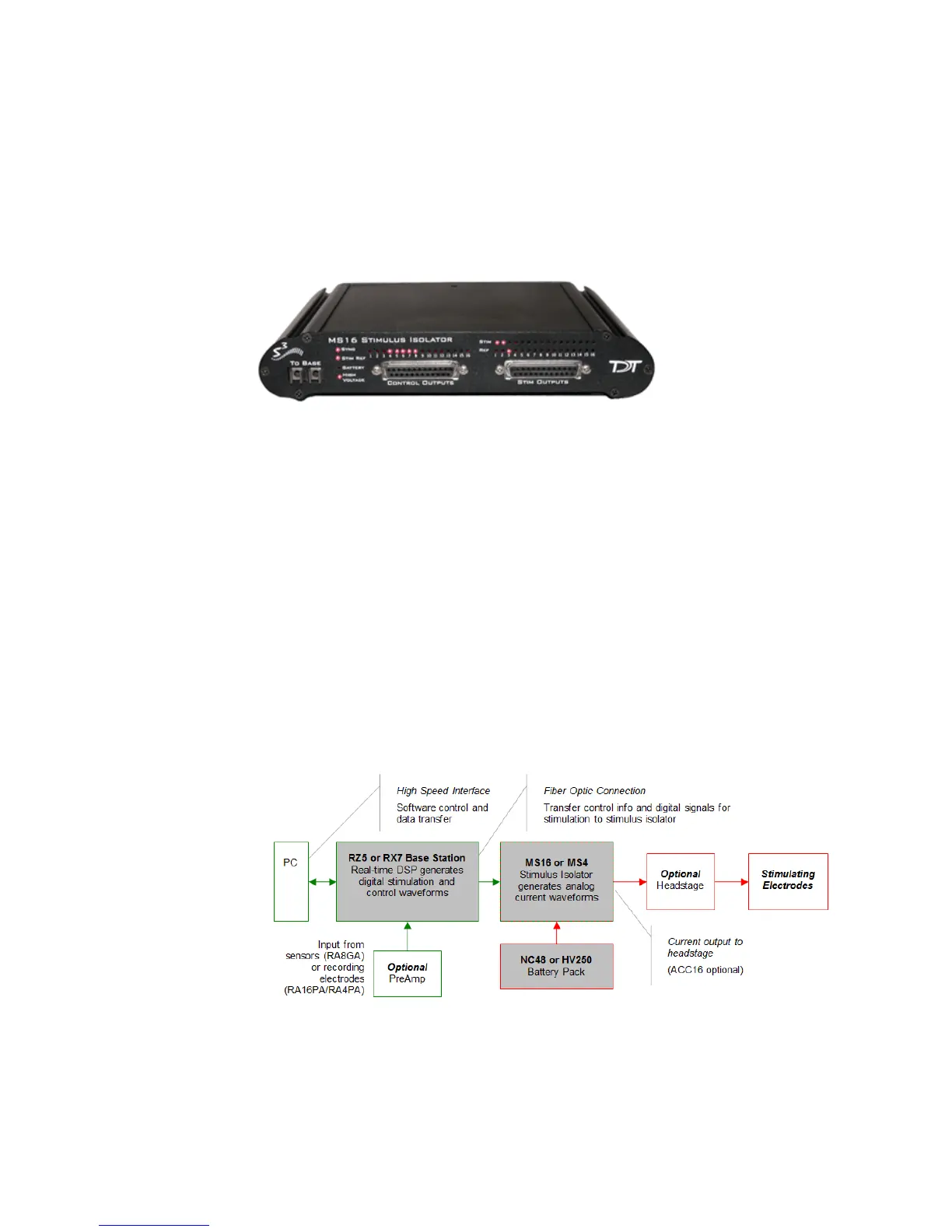 or MS16 Stimulus Isolator, ACC16 AC Coupler (Optional) and NC48 or HV250