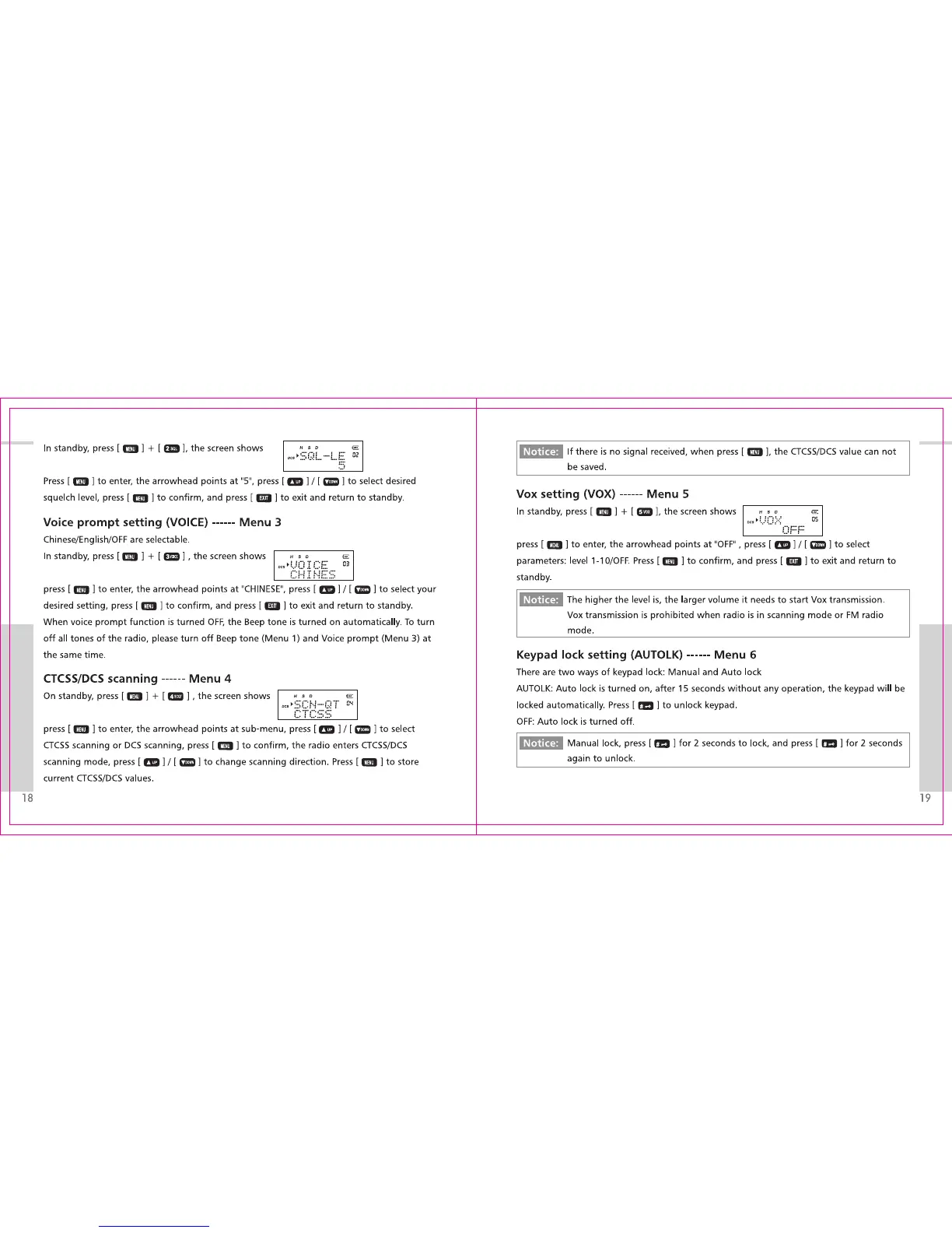 TDX One Q8A - Voice Prompt & CTCSS;DCS Scanning; Vox & Keypad Lock Settings