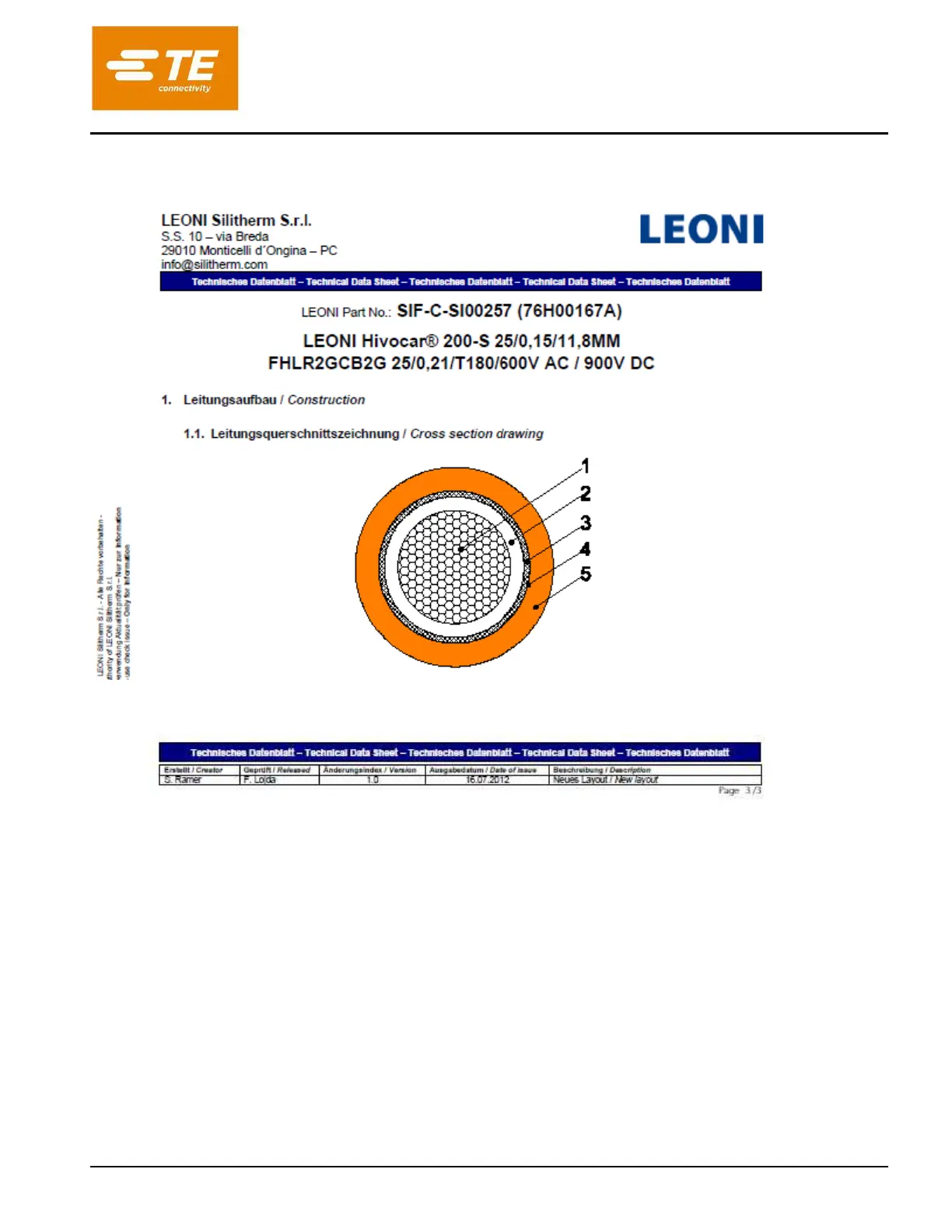 TE Connectivity HVP800 2PHI 90 - Leoni Silitherm Wire Size 25 Mm²; Datenblatt Leoni Silitherm Leitungsquerschnitt 25 Mm²
