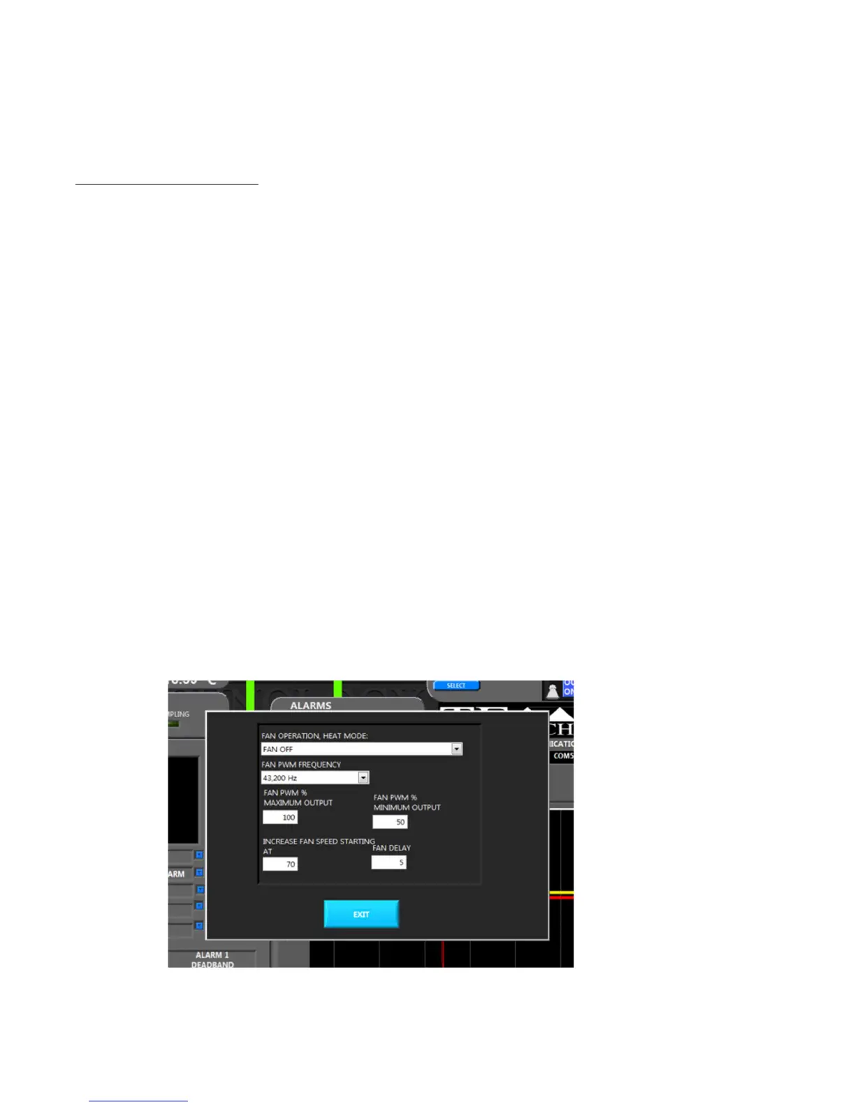 The “FAN CONTROL SETTINGS” below dictate how the PWM signal generated by the Alarm 1 output transistor relative to