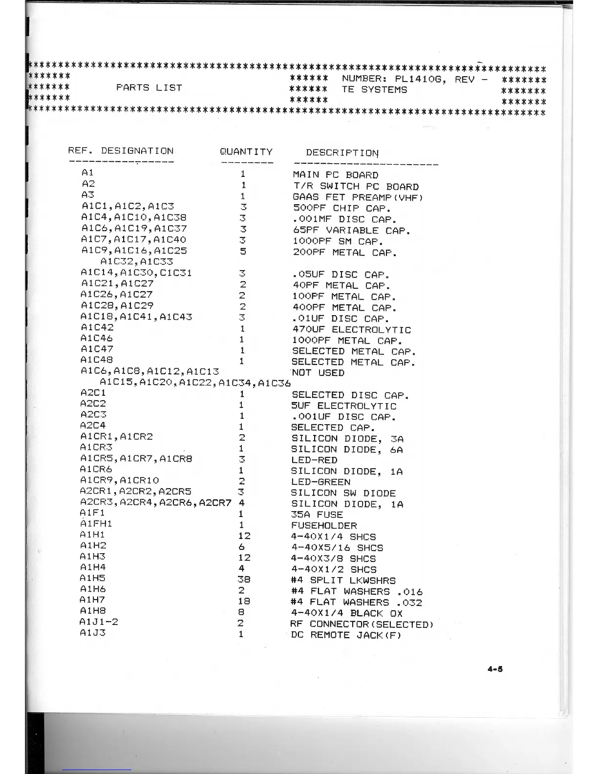 TE 1410 - Parts List