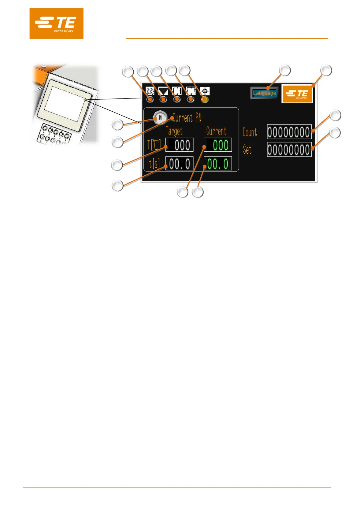 (Illuminated amber when heater start to warm up. Illuminated green when heater reach set value. Ready to production.)