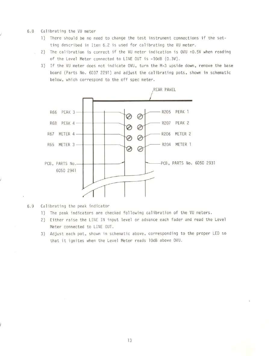 Teac 3 - 6.8 Calibrating the VU Meter; 6.9 Calibrating the Peak Indicator