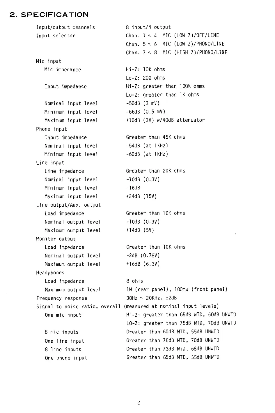 Hi-Z: greater than 65dB WTD, 60dB UNWTD