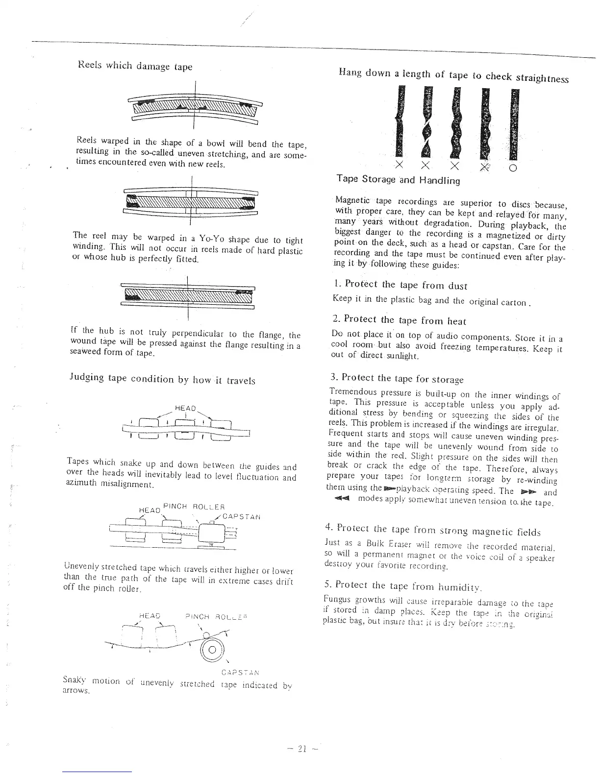 Teac 3340S - Reel Damage and Tape Condition; Judging Tape Condition by Travel; Tape Storage and Handling
