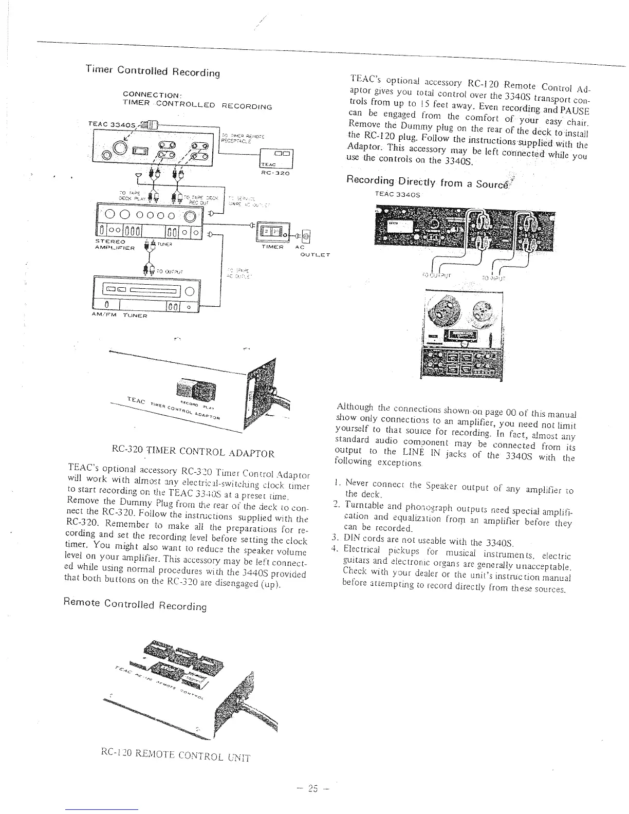 Teac 3340S - Timer Controlled Recording; Recording Directly from a Source; Remote Controlled Recording