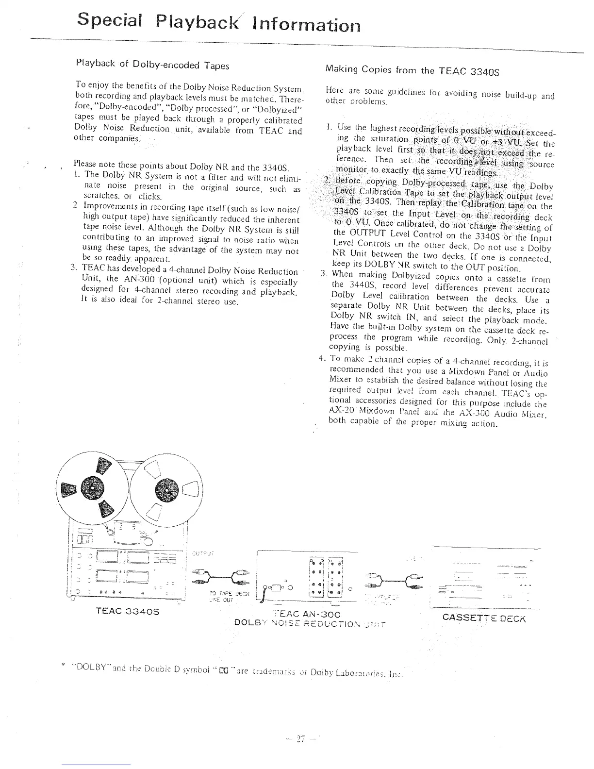 Teac 3340S - Special Playback Information; Playback of Dolby-encoded Tapes; Making Copies from TEAC 3340 S