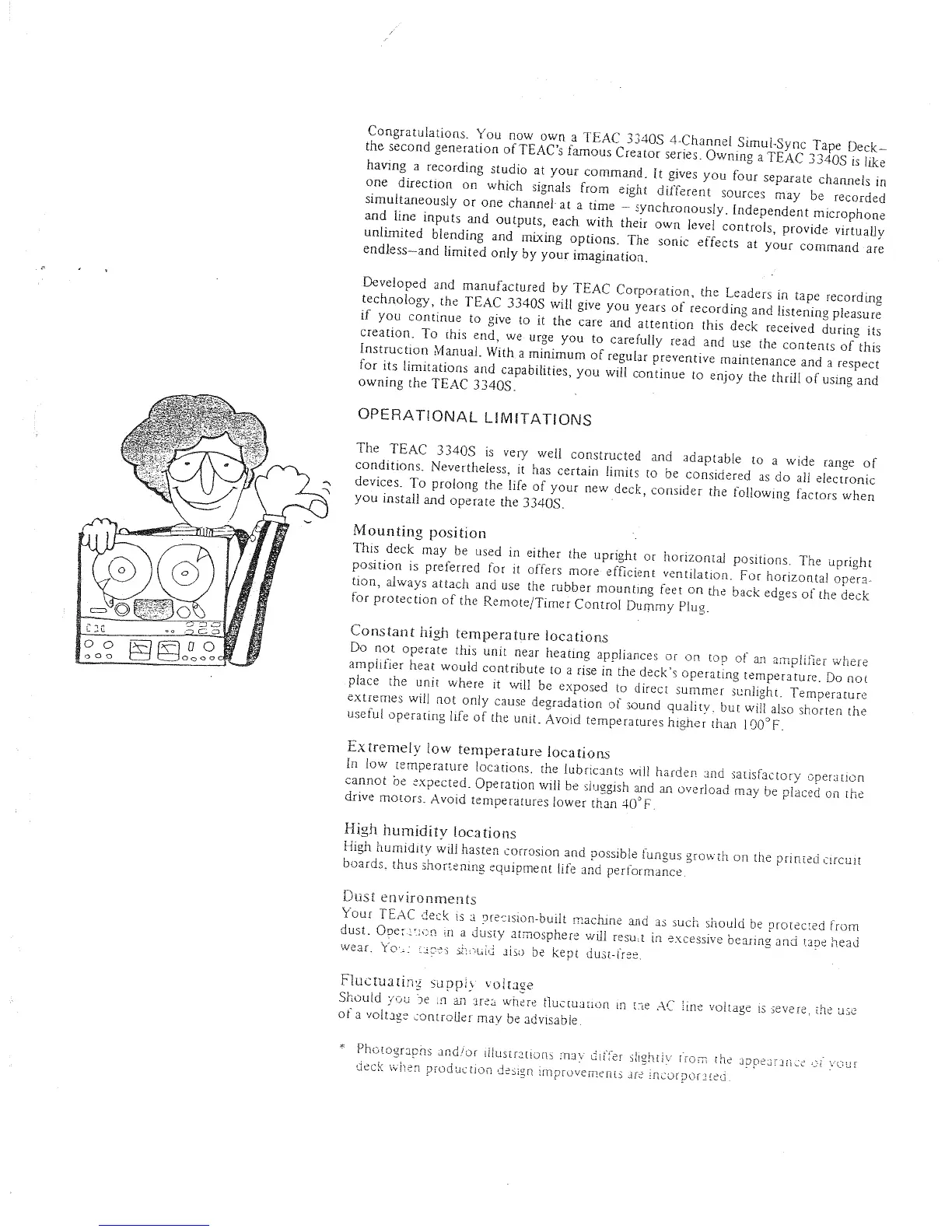 Teac 3340S - Operational Limitations; Mounting Position Guidelines; High Temperature Operation Precautions; Low Temperature Operation Precautions