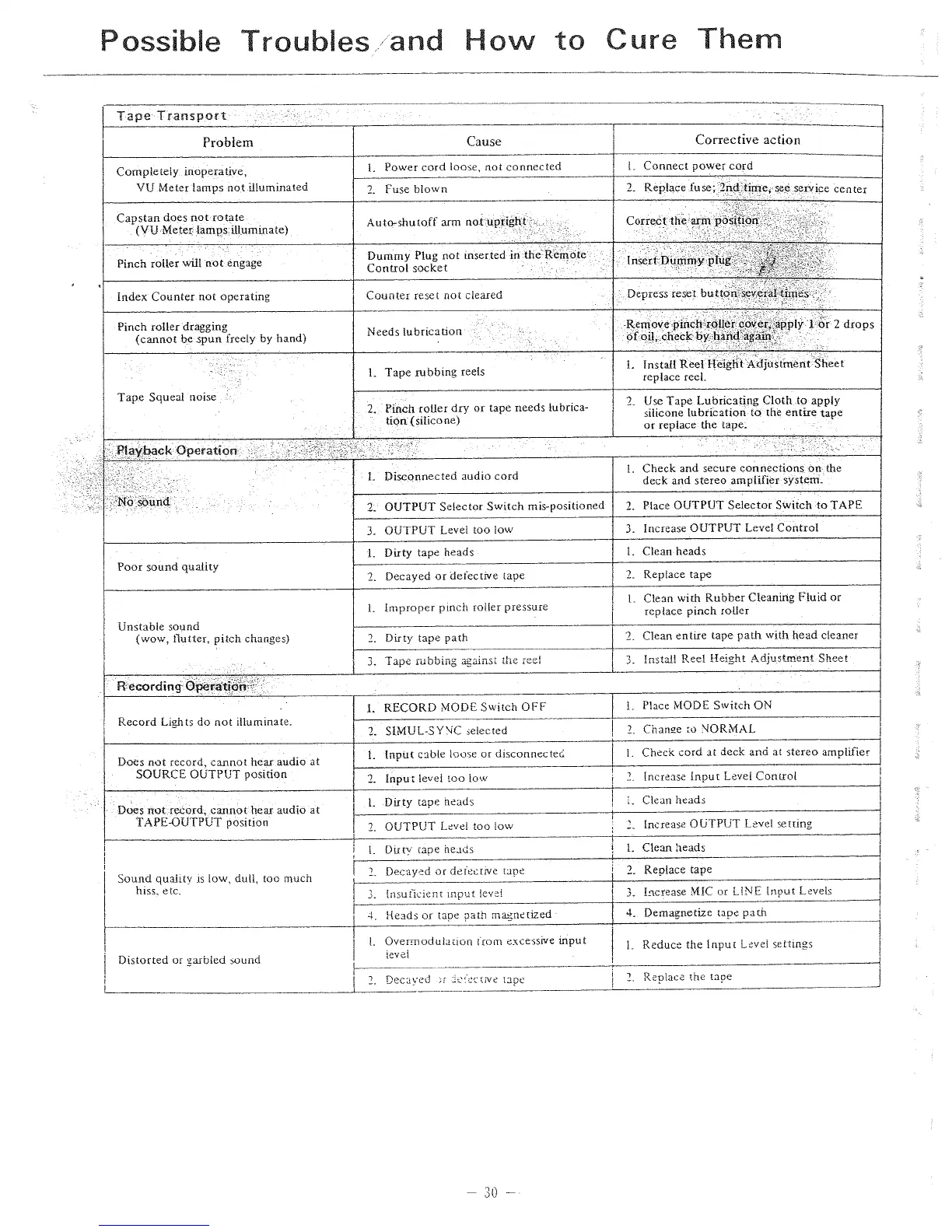 Teac 3340S - Troubleshooting Common Problems; Tape Transport Issues; Playback Operation Issues; Recording Operation Issues