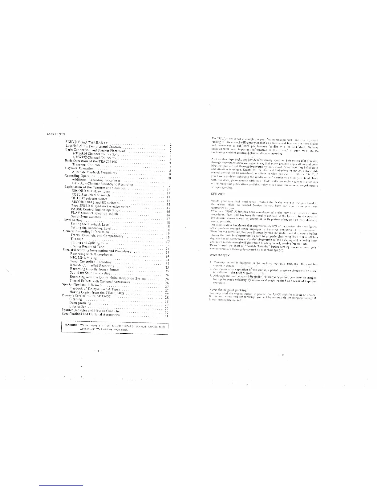 Teac 3340S - Service and Warranty Information; Service Procedures; Warranty Details