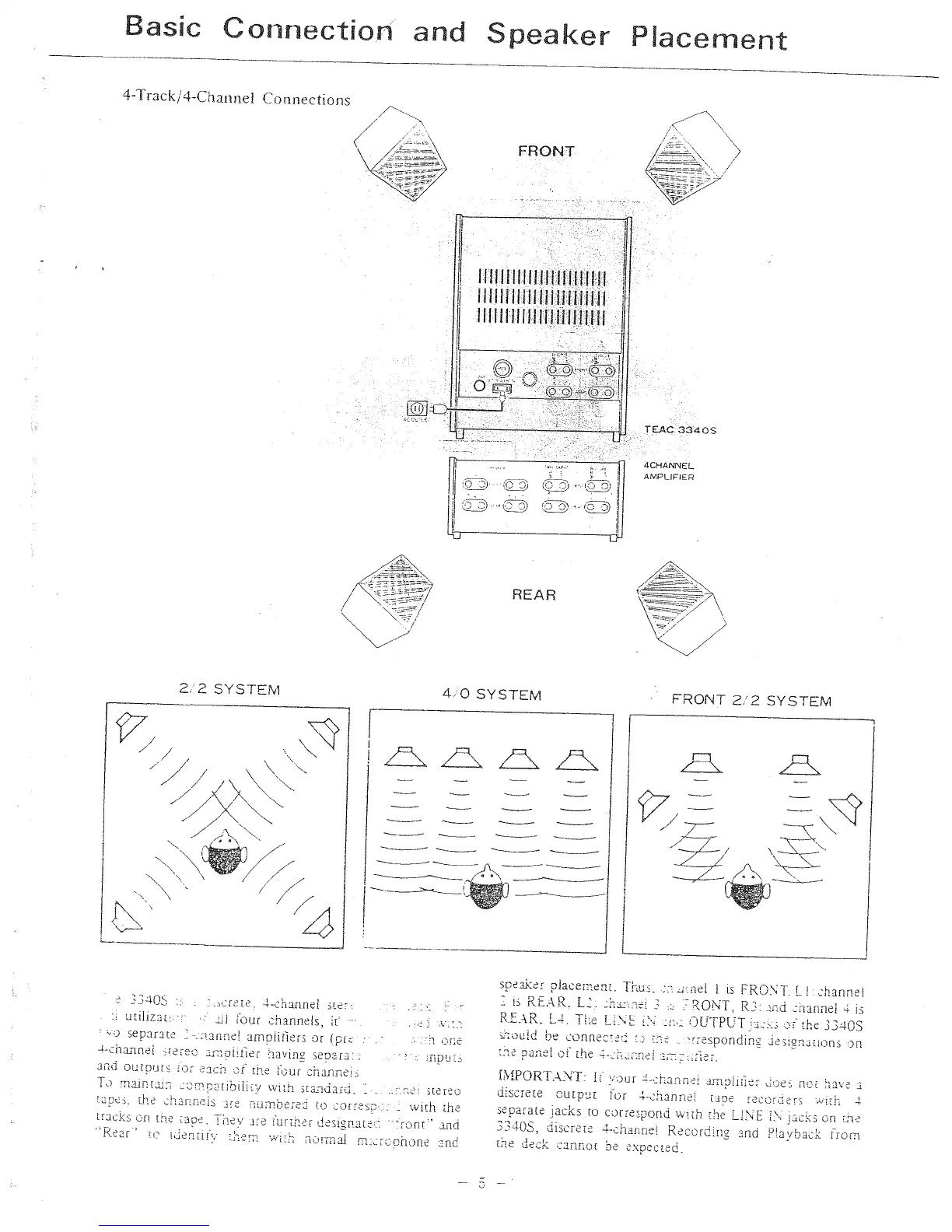 Teac 3340S - Basic Connection and Speaker Placement; 4-Track;4-Channel Connections