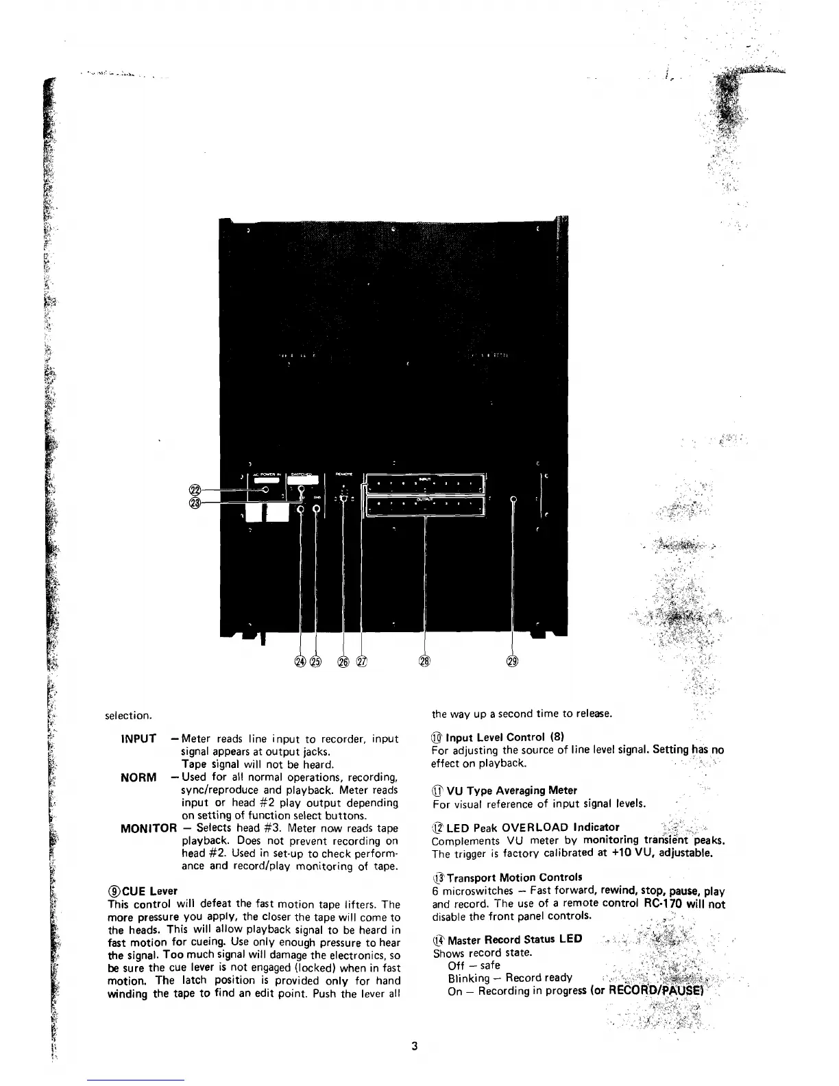 recordfplay monitoring of tape.