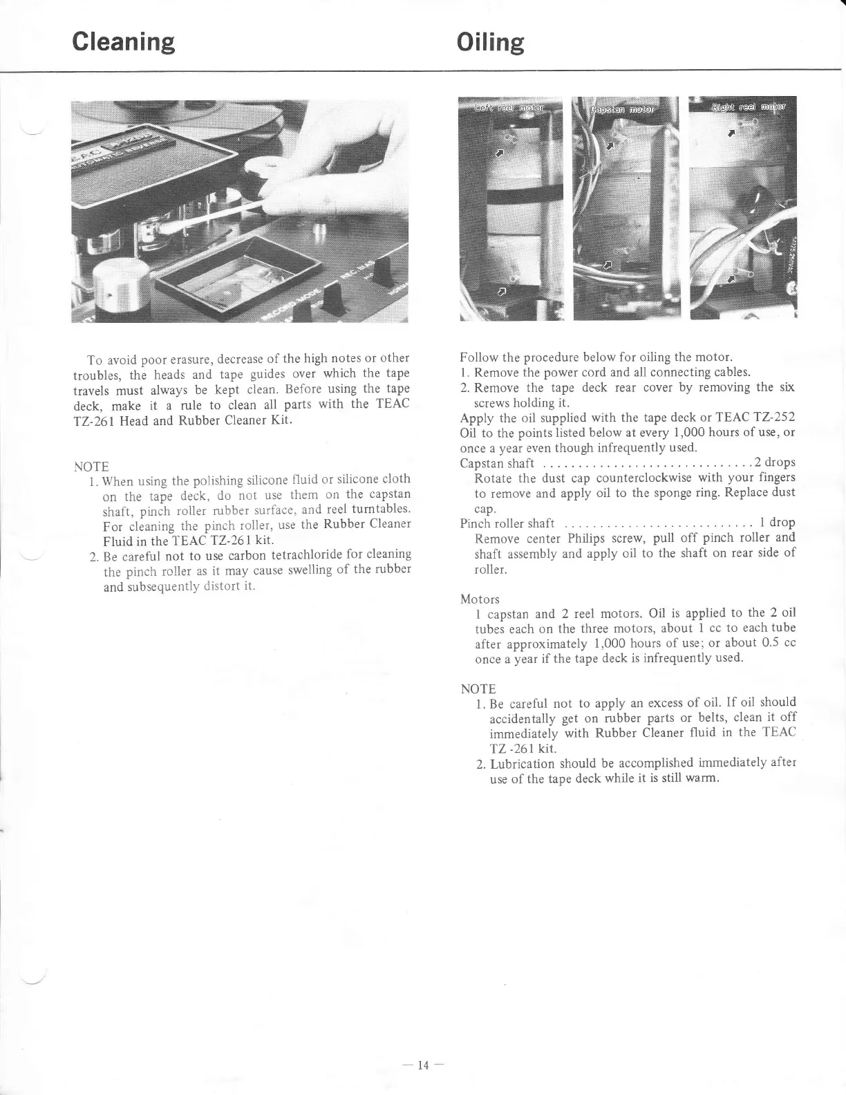 Teac A-1250 - Cleaning Tape Deck Components; Cleaning Heads and Guides