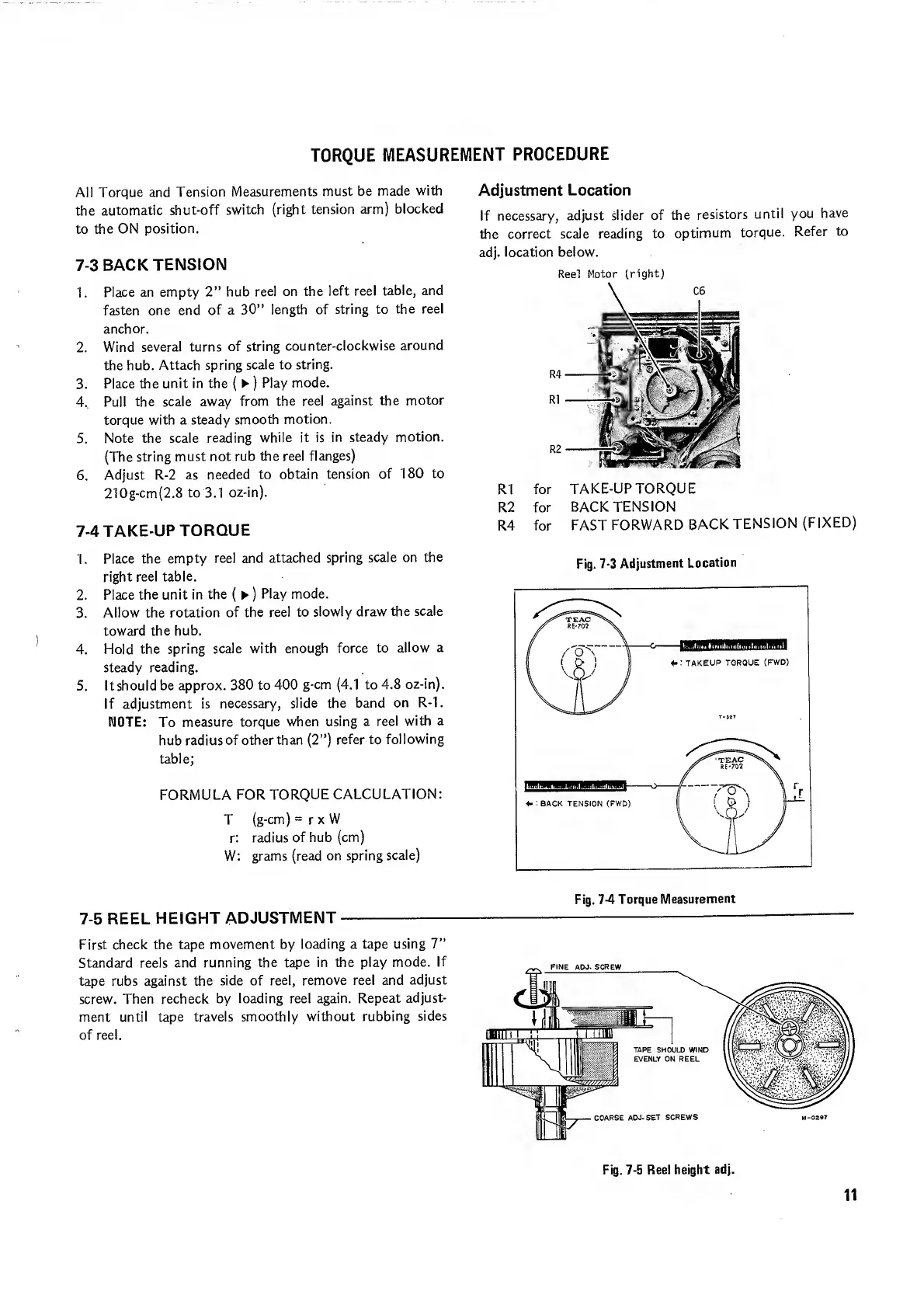 Teac A-2300SD - Back Tension; Take-Up Torque; Reel Height Adjustment
