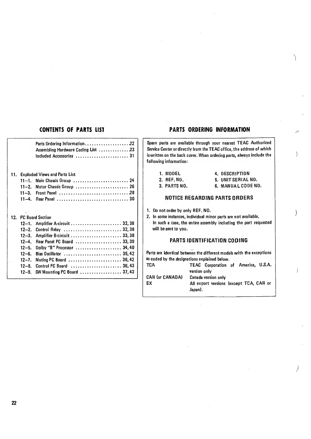 Teac A-2300SD - Exploded Views and Parts List
