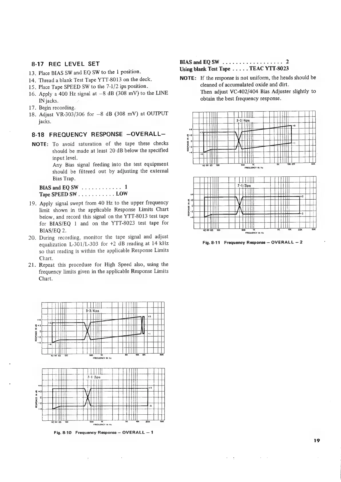 Teac A-2300SR - Bias, Record Level, and Frequency Response Adjustments; Bias Adjustment Procedure; Record Level Setting; Overall Frequency Response