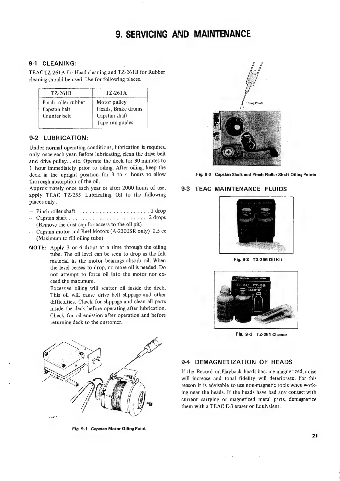 Teac A-2300SR - Servicing and Maintenance Guidelines; Cleaning Procedures for Tape Path; Lubrication Schedule and Methods; TEAC Maintenance Fluids
