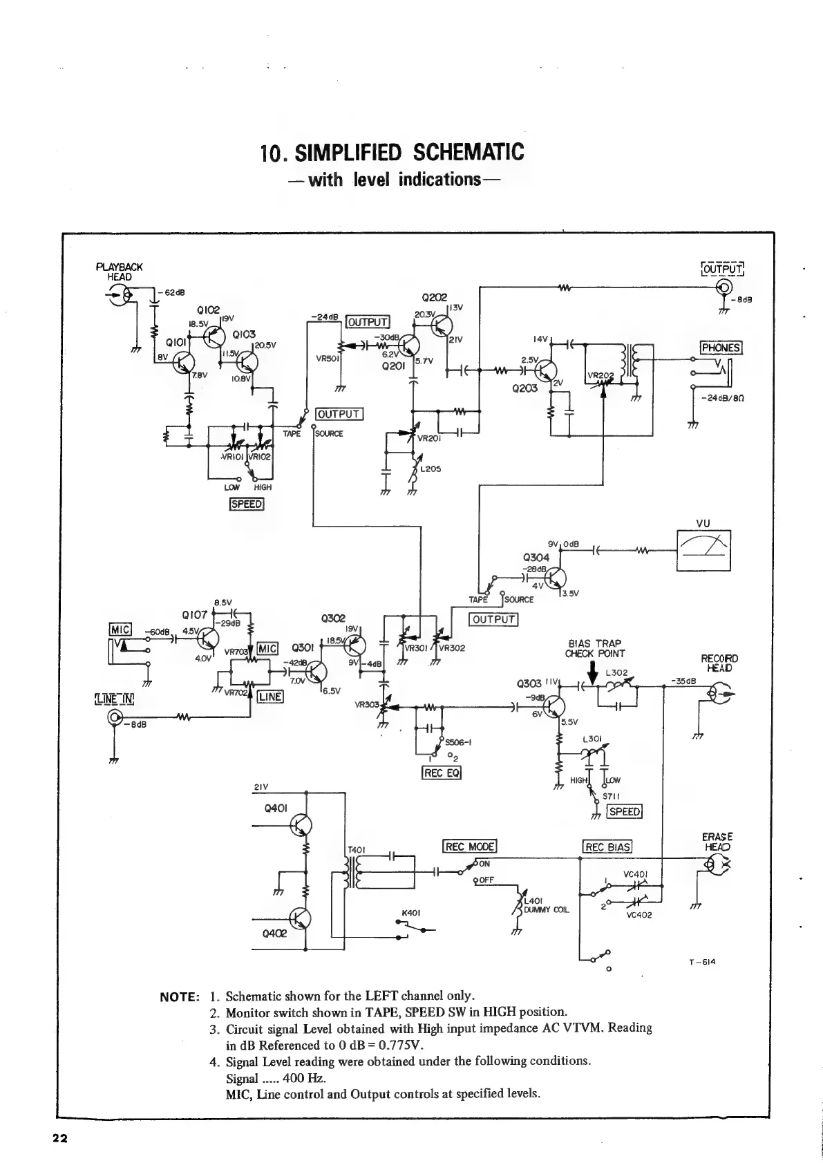 Teac A-2300SR - Simplified Schematic with Level Indications