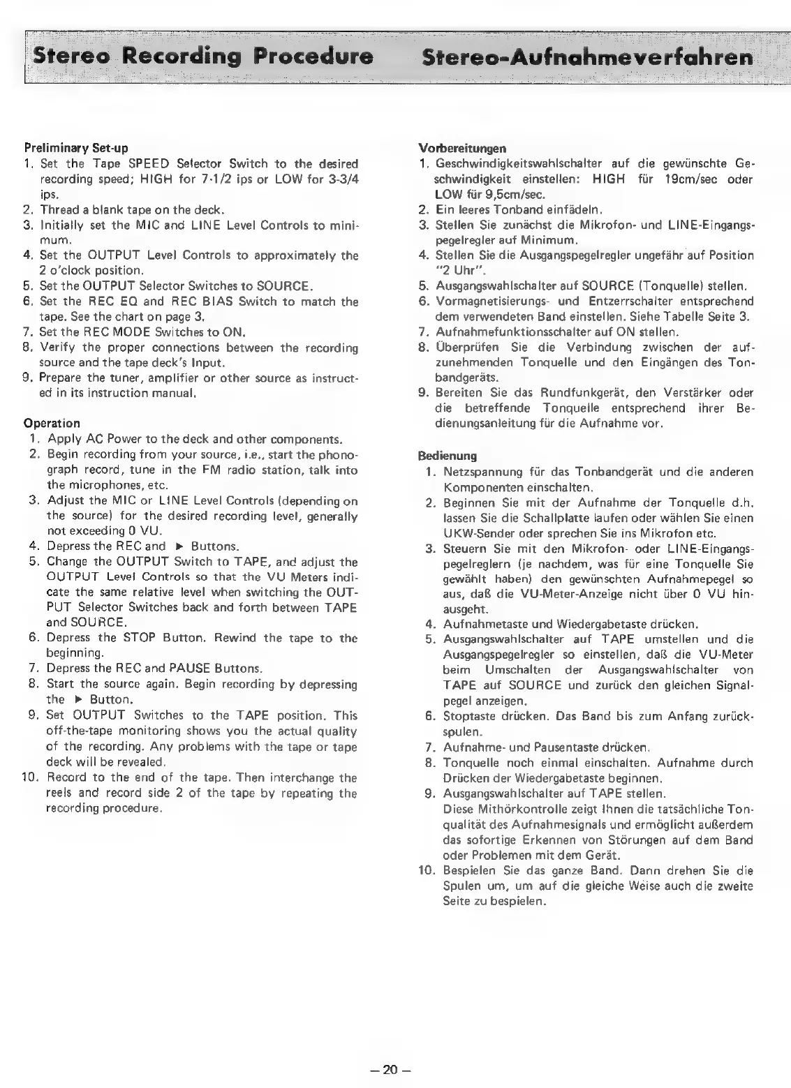 Teac A-2300SX - Stereo Recording Procedure