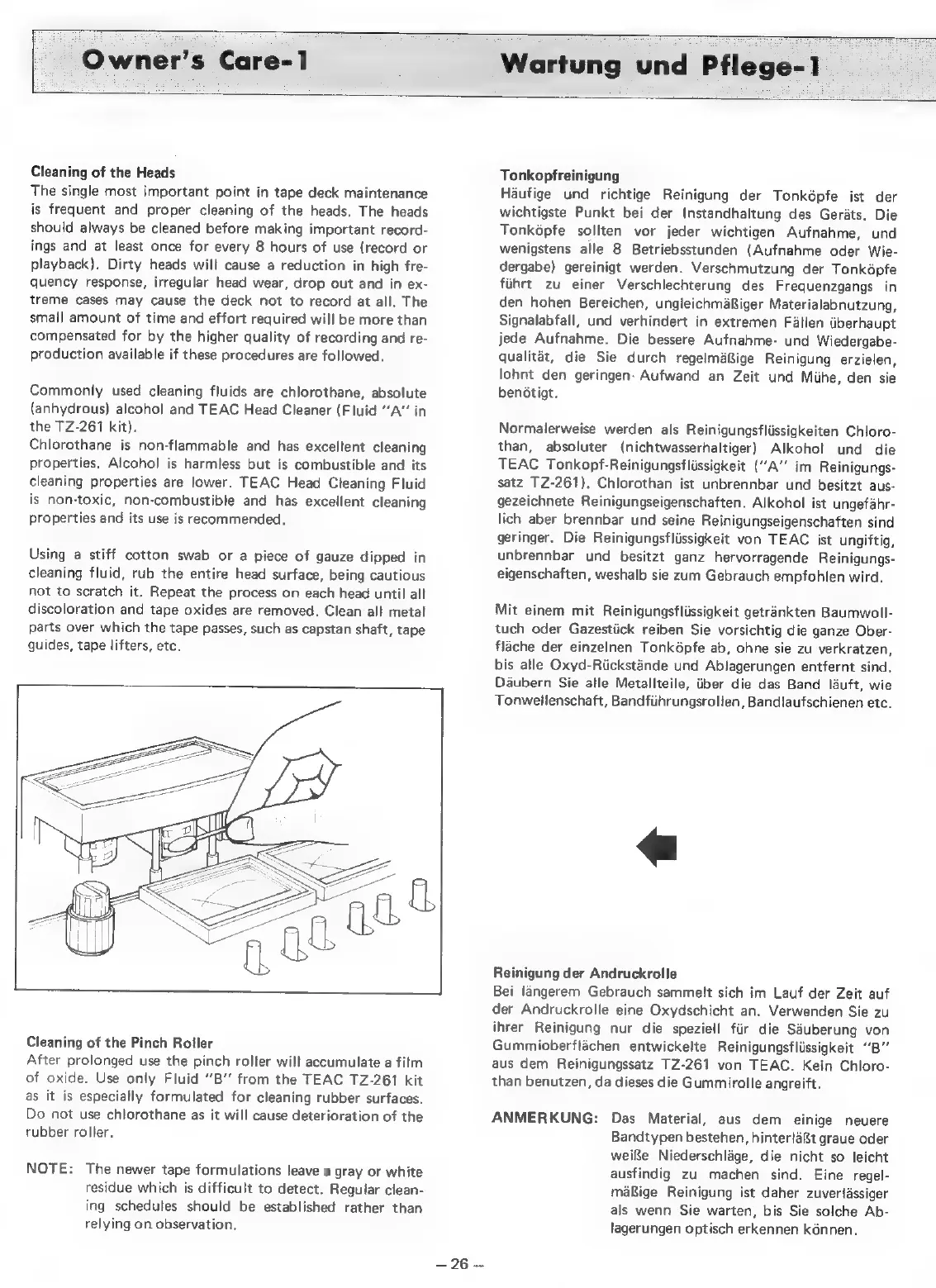 Teac A-2300SX - Owners Care and Maintenance Part 1; Cleaning of the Heads