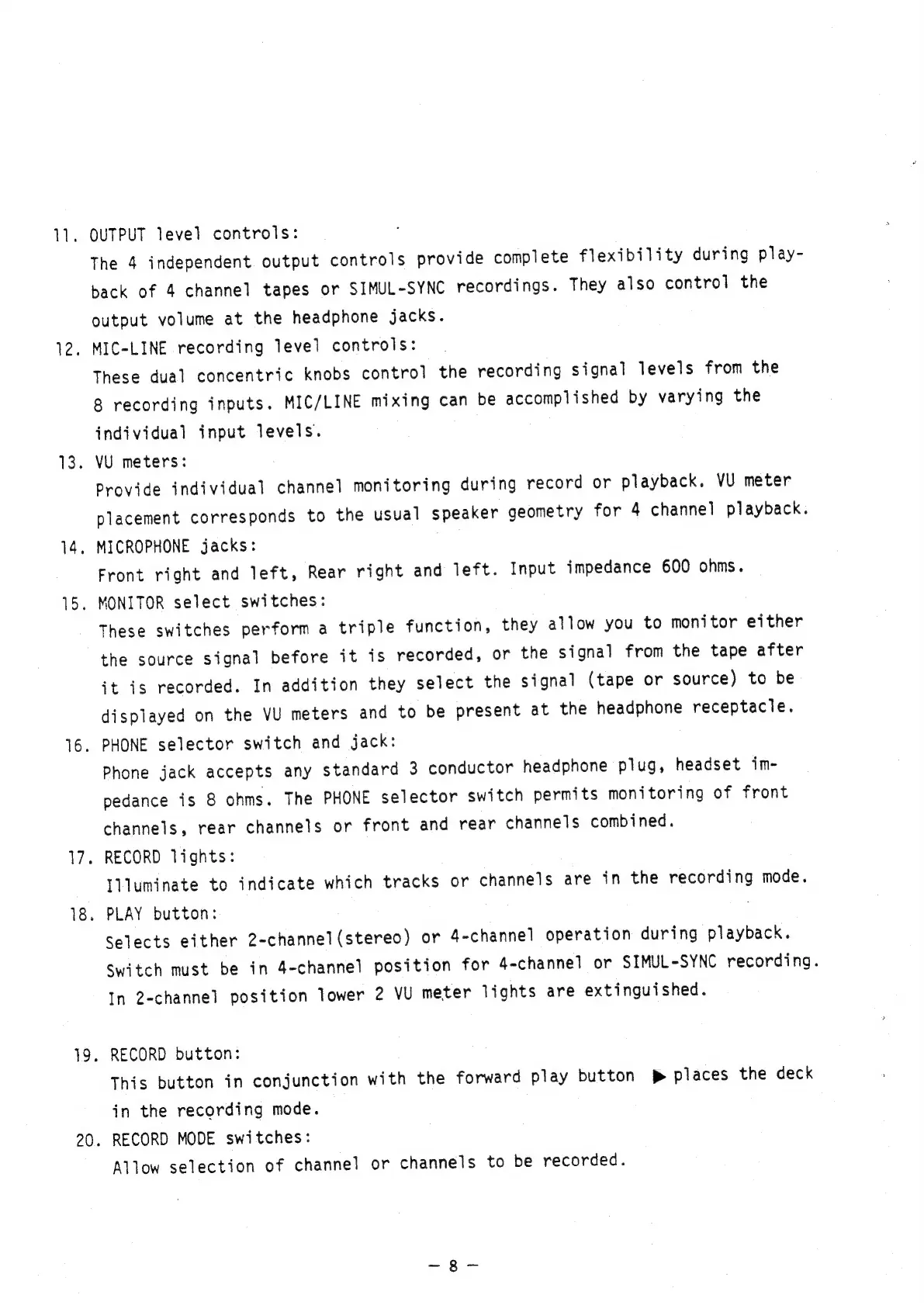 Teac A-2340 - OUTPUT level controls; MIC-LINE recording level controls; MONITOR select switches