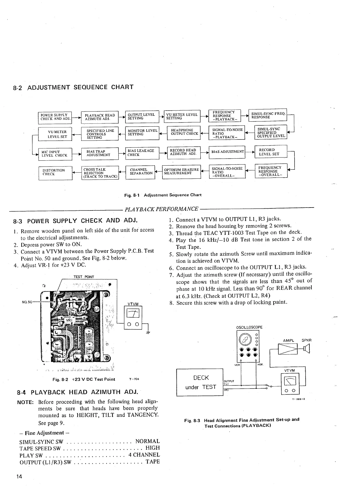 Teac A-2340SX - Adjustment Sequence Chart; Power Supply Check and Adjustment; Playback Head Azimuth Adjustment