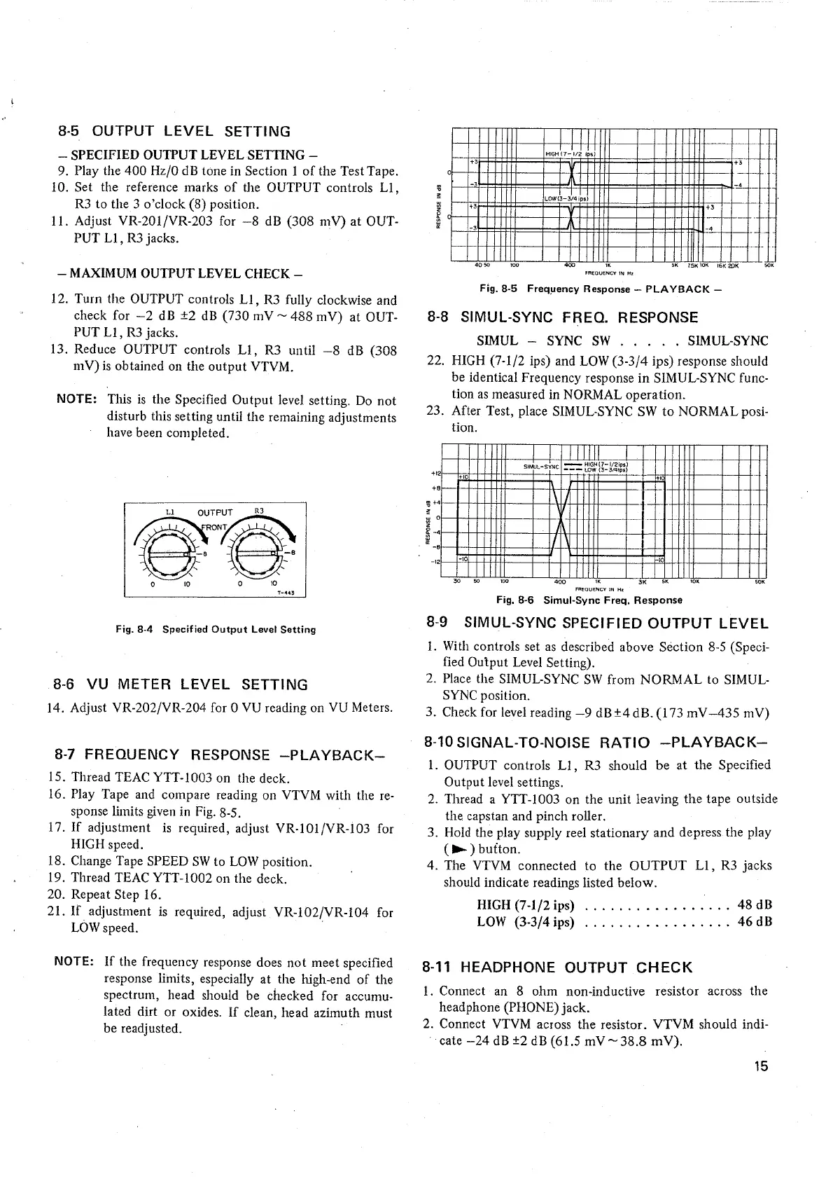 Teac A-2340SX - Output Level Settings; Playback Frequency Response; Playback Signal-to-Noise Ratio; Other Performance Adjustments and Checks