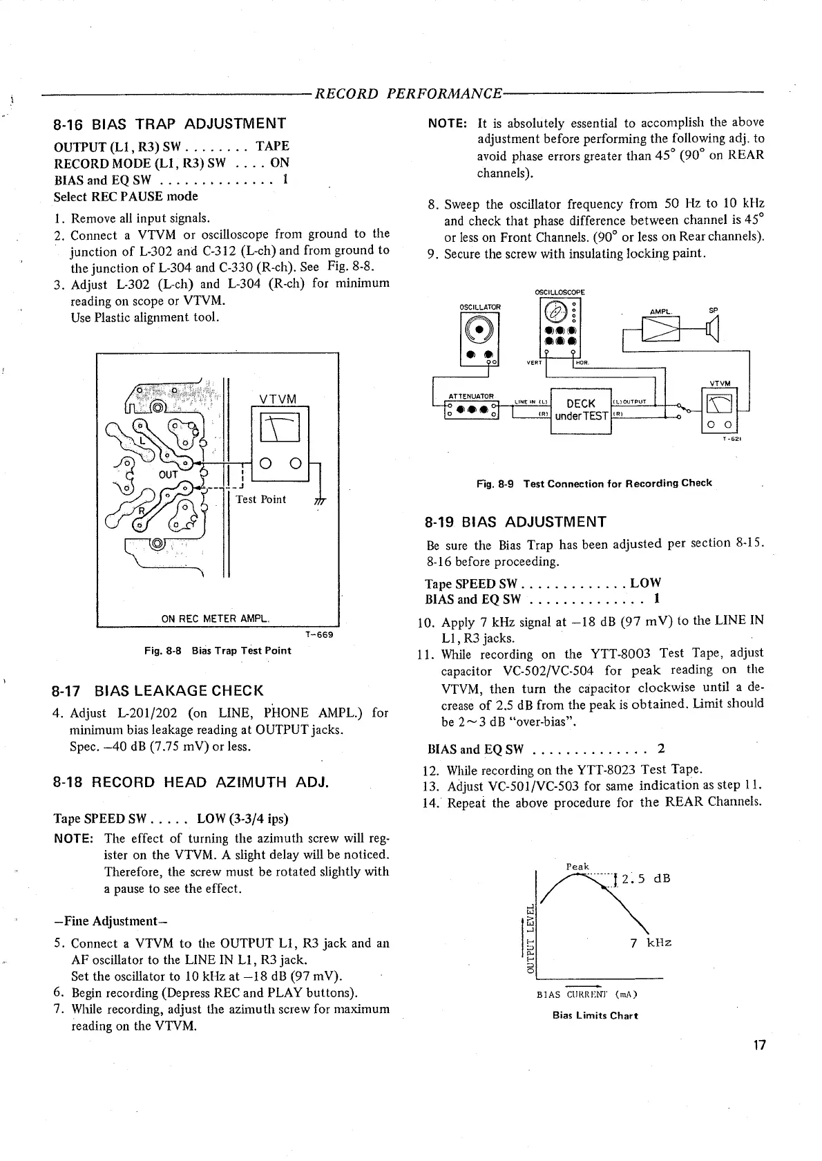 Teac A-2340SX - Record Performance Measurement and Adjustment; Bias Trap Adjustment; Bias Leakage Check; Record Head Azimuth Adjustment
