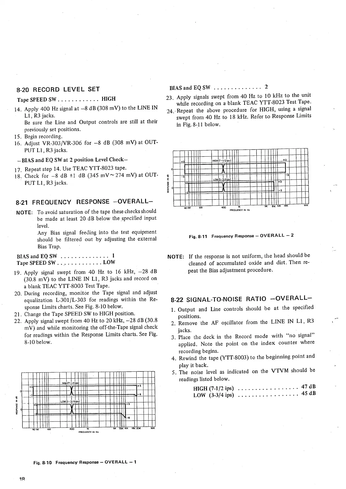 Teac A-2340SX - Bias Adjustment; Record Level Set; Overall Frequency Response; Overall Signal-to-Noise Ratio
