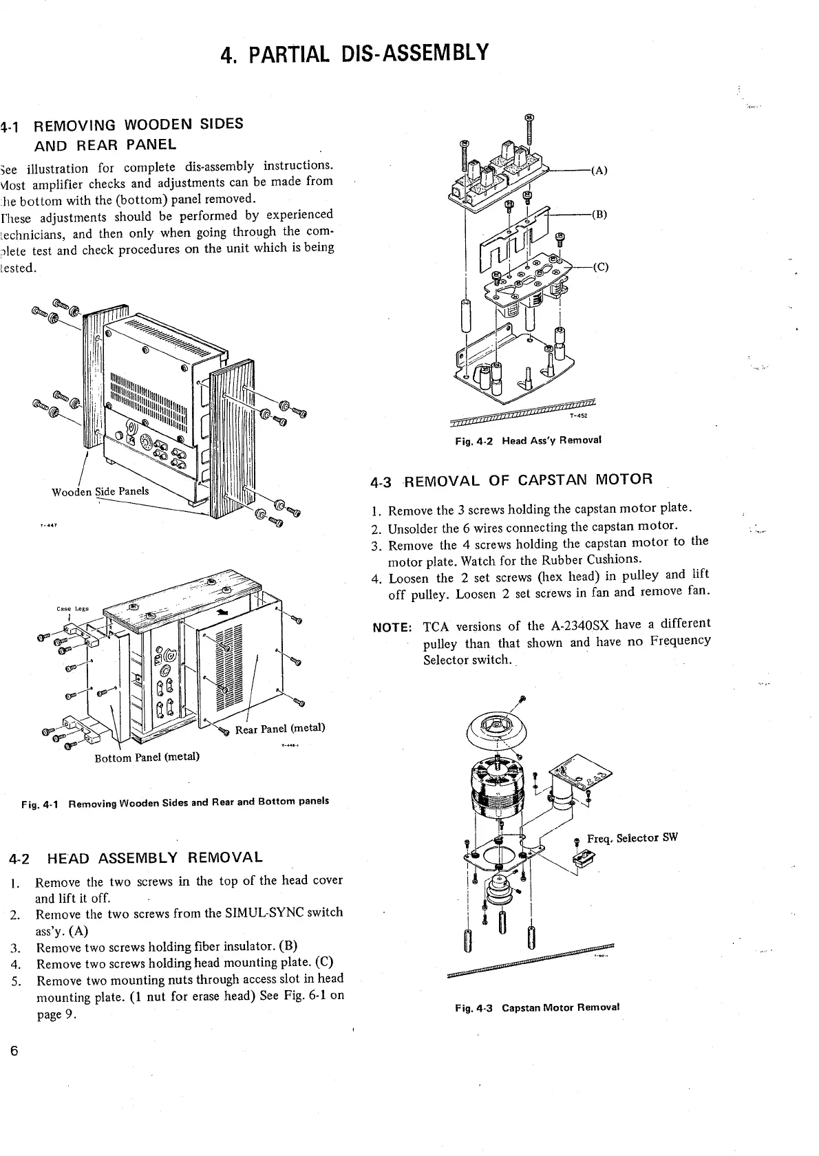 Teac A-2340SX - Partial Disassembly Procedures; Removing Wooden Sides and Rear Panel; Head Assembly Removal; Capstan Motor Removal