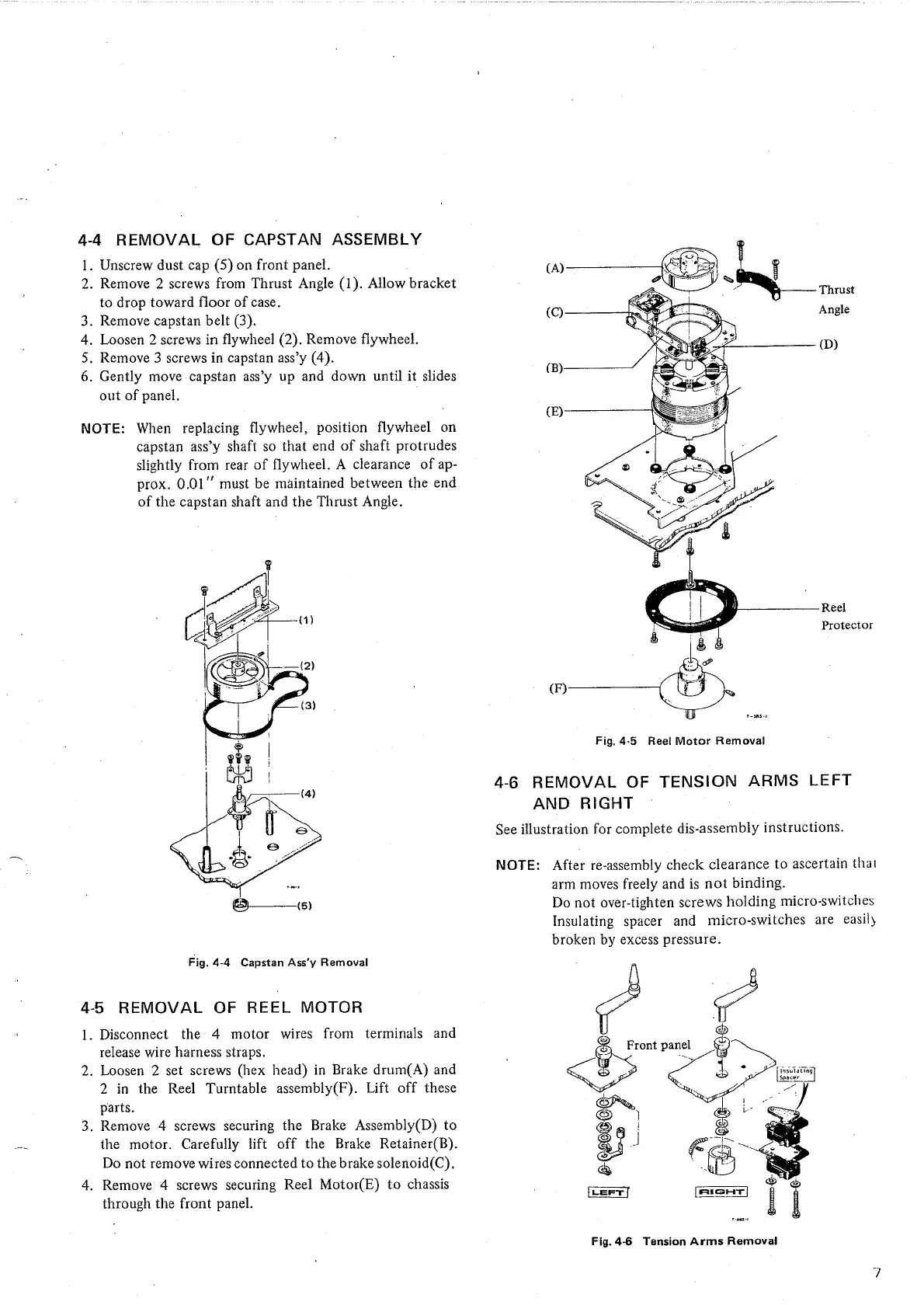 Teac A-2340SX - Capstan Assembly Removal; Reel Motor Removal; Tension Arms Removal
