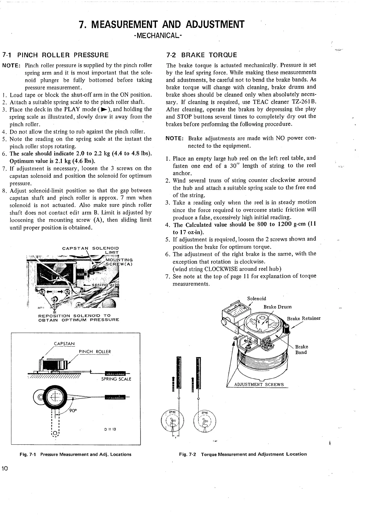 Teac A-2340SX - Mechanical Measurement and Adjustment; Pinch Roller Pressure; Brake Torque
