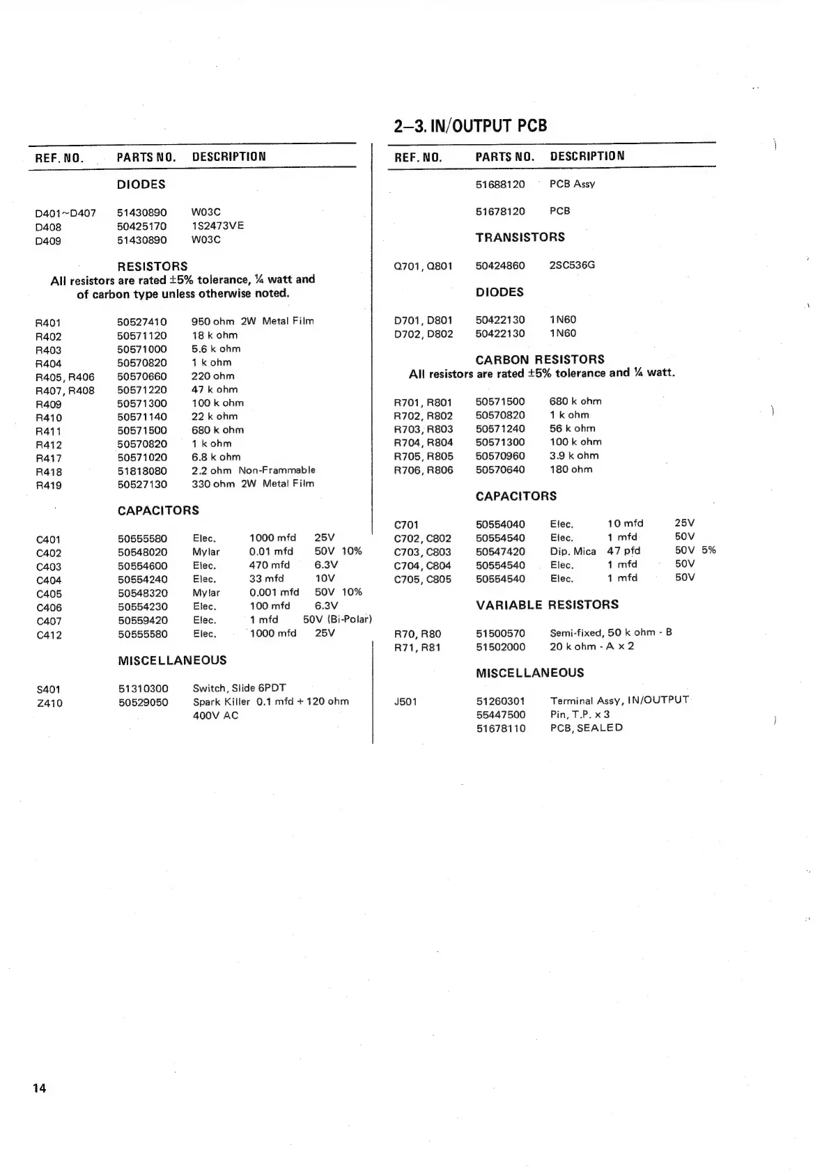 Teac A-300 - PC Board Section Parts Lists (Continued); MECHANISM PCB Parts List; IN;OUTPUT PCB Parts List; I;O PCB Diodes and Resistors